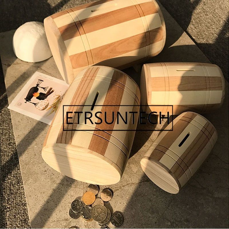 2020 New 1pc Wooden Money Box Piggy Bank Safe Money Box Savings Wine Barrel Wood Carving Handmade Piggy Bank 30 Money Boxes Aliexpress